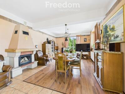 Przytulny, ciepły dom otoczony brzozami w pięknej okolicy nad czystym jeziorem. Na parterze przestronny salon połączony z ...